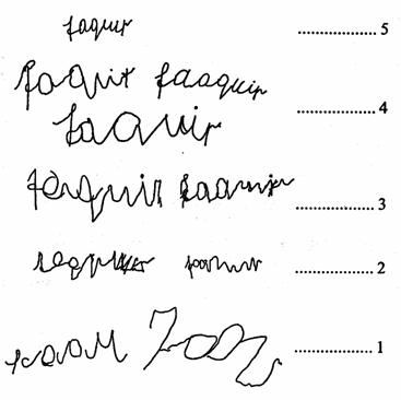 Инструкция. Посмотри, здесь что-то написано. Ты, может быть, еще не учился писать, но попробуй, наверное, ты сумеешь. Хорошенько посмотри, как это написано, и рядом, на этом пустом месте напиши тоже так.