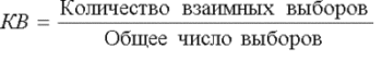 Одним из показателей благополучия складывающихся отношений является коэффициент взаимности выборов. Он показывает, насколько взаимны симпатии в детской общности. Коэффициент взаимности (KB) вычисляется по формуле: