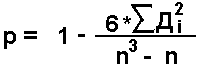- Затем полученные (Дi, в квадрате) складываем, умножаем на 6, делим произведение на (n х n х n — n) = (20 х 20 х 20 — 20)= = 7 980 и, наконец, от 1 отнимаем частное, т. е. находим коэффициент ранговой корреляции: