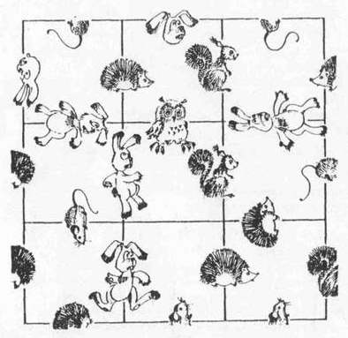 2) Звери повторяются. Поэтому сначала можно запомнить расположение ежей, затем — лис и т.д.